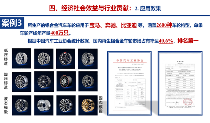 立中集團子公司保定市立中車輪制造有限公司作為核心參與單位,與青島理工大學(xué)、中南大學(xué)、青島海聯(lián)金匯汽車零部件有限公司、重慶美利信科技股份有限公司等13家單位聯(lián)合攻關(guān),立中集團董事長臧永興作為主要完成人(第四位)也參與其中。最終,該項目獲得“技術(shù)難度大、創(chuàng)新性強,整體達到國際先進水平,其中汽車底板裝配一體化關(guān)鍵技術(shù)、輪轂雙邊澆立式旋壓形性協(xié)同關(guān)鍵技術(shù)達到國際領(lǐng)先水平”的高度評價,充分彰顯了立中集團在鋁合金車輪制造領(lǐng)域的技術(shù)實力和創(chuàng)新能力。